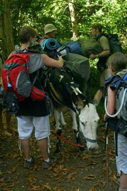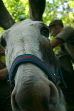 Zum Sonnenuntergang war dann auch das letzte Auto gepackt und wir konnten unsere nicht unwesentlichen Reste auf den Grill werfen. Zwischendurch mussten wir etwas zur Seite rücken, weil eine Familie auf Eselwanderung an den Fluss wollte. Geschickte Sache: Man wandert gemächlich durchs Tal und lässt den Esel das Gepäck schleppen. Manch einer von uns langte sich dann nach dem anstrengenden Tag an die Ohren, um zu sehen, ob sie ev. auch gewachsen waren, wie bei unseren schleppenden Kollegen.