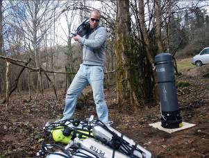 Ein weiteres Ziel war die Ressel. Der Flow im Fluss machte es schwer, selbst mit Scooter den Höhleneingang zu erreichen, aber ab dort war der Flow dann moderat. In der Höhle fanden wir eine chaotische Leinensituation vor. Ab dem Schacht war ein Großteil der Leinen gerissen. Wegen der ganzen Flickerei kamen wir nicht ganz bis zum tiefen T. An eine Penetration bis zur Biwackhalle war nicht zu denken.