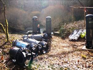 Die frühe Truppe (Tobi P, Fred und Tibor) machte die ersten Check Tauchgänge, jeweils OC mit einer Stage und maximaler Penetration von 250m. Sie betauchten am Sonntag die Ressel bei geringem Flow und mäßigen Sichtweiten von 4-6m. Am Montag folgte die Landenouse bei sehr geringem Flow und sehr guter Sicht (10-15m). Dienstags dann die St. Georges bei kaum Flow, die Sicht lag bei 5-7m.