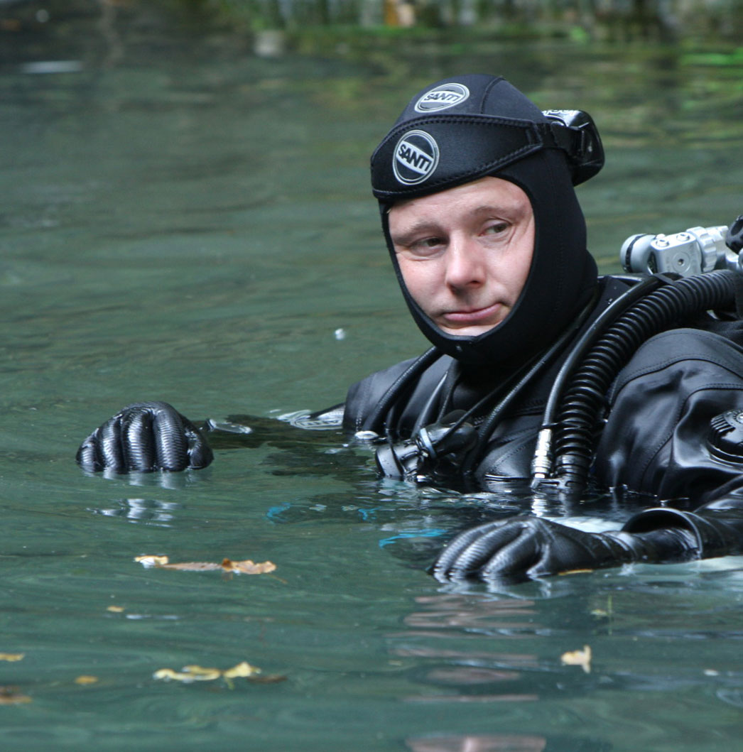 Dieser Moment ist der aufregendste von allen. Man steht im Wasser mit einem wahnsinnig schweren Tauchgepäck auf dem Rücken, kann sich über Wasser kaum noch bewegen und ist im Begriff so tief in eine Höhle abzutauchen, dass viele einen solchen Tauchgang als lebensmüde bezeichnen würden. Das Risiko ist tatsächlich nicht zu unterschätzen, aber Vorbereitung, Professionalität, Teamgeist, Buddy Awareness und viel Erfahrung geben schlussendlich die notwendige Sicherheit um doch abtauchen zu können.