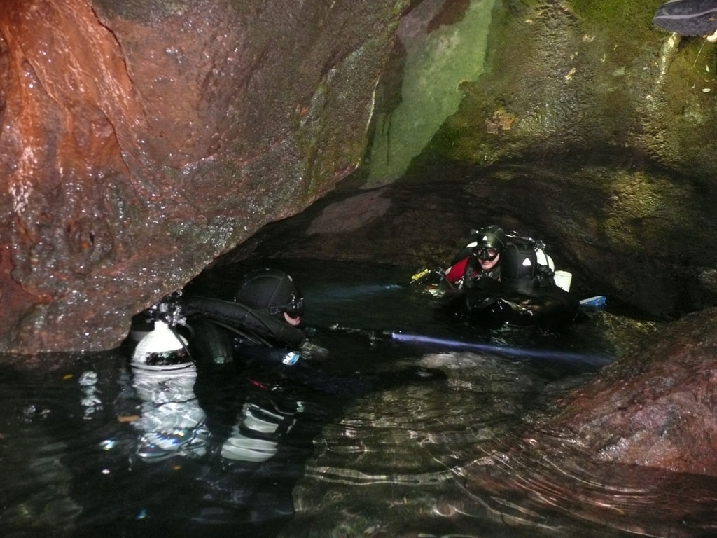 Der letzte Stop lag direkt unterhalb des Quellteichs. Man konnte Darko, der an der Oberfläche schwamm, bereits kurze Lichtzeichen geben. Wenige Minuten später besuchte er die Beiden und sie gaben ihm die Info, das das Pushteam nicht wie erwartet eingetroffen war.