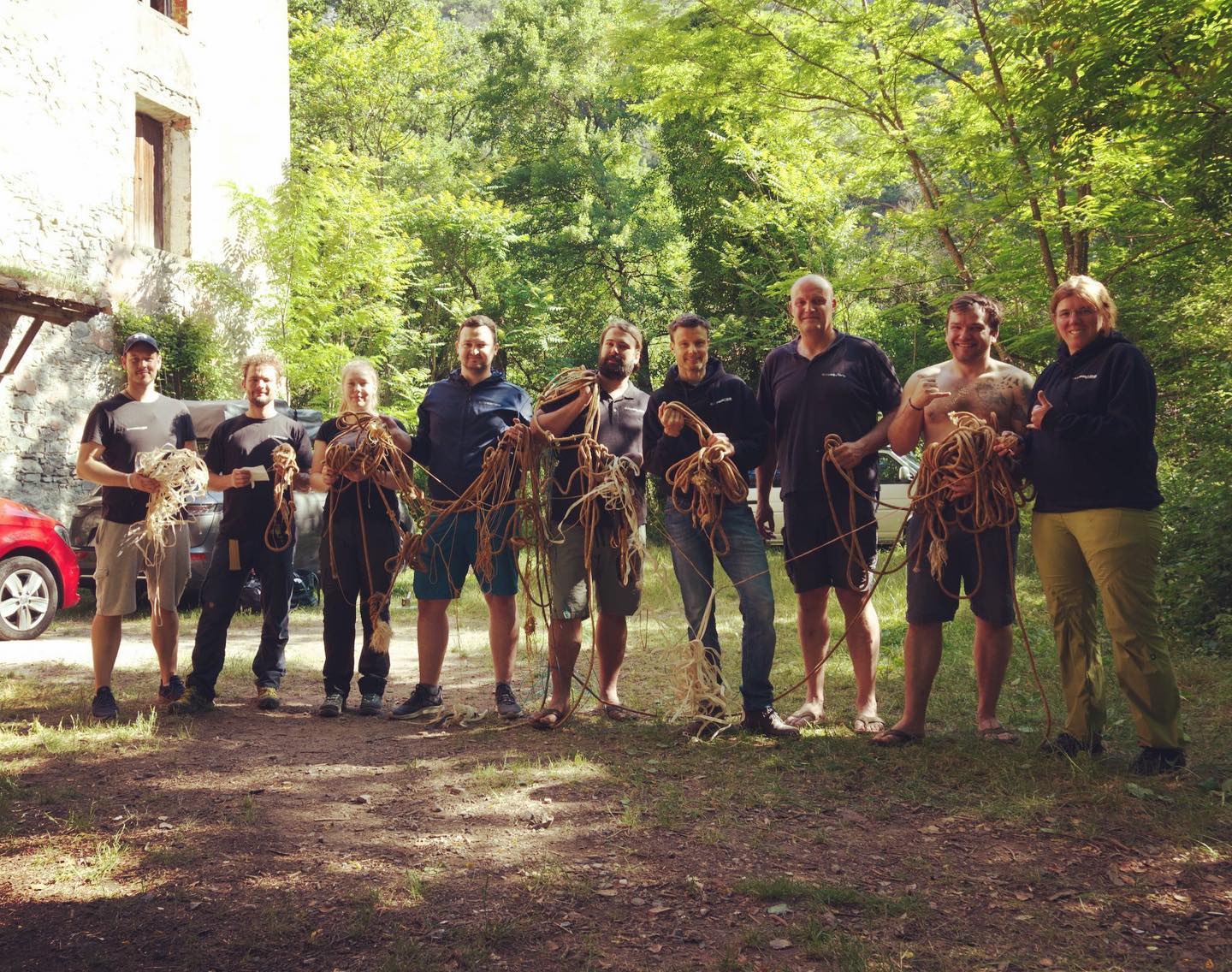 Für Dienstagmorgen stand ein Vermessungs-Workshop auf dem Programm. Nicht alle im Team hatten mit dem mNemo viel Erfahrung. So haben wir nach dem Frühstück schnell ein paar Seile gespannt und Olli hat uns eine Einweisung in dessen Funktionen gegeben.